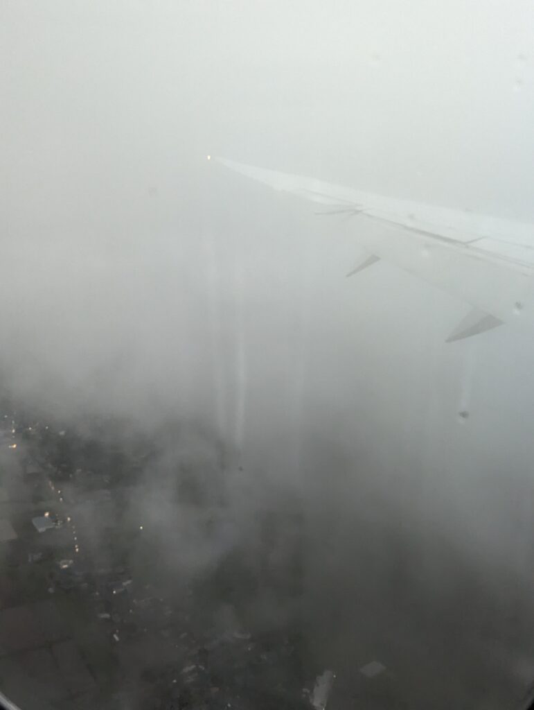 Un voyage de 19h, qui passe lentement surtout quand aucun des vols ne nous ont permis d’être côte à côte et enfin on atterrit à Tokyo à 19h heure locale. Météo douteuse, la vue du ciel n’était pas au rendez-vous.