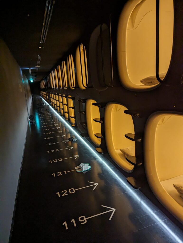 Et ce soir première nuit sur le territoire japonais : c’est capsule hôtel ! homme et femme sont séparés