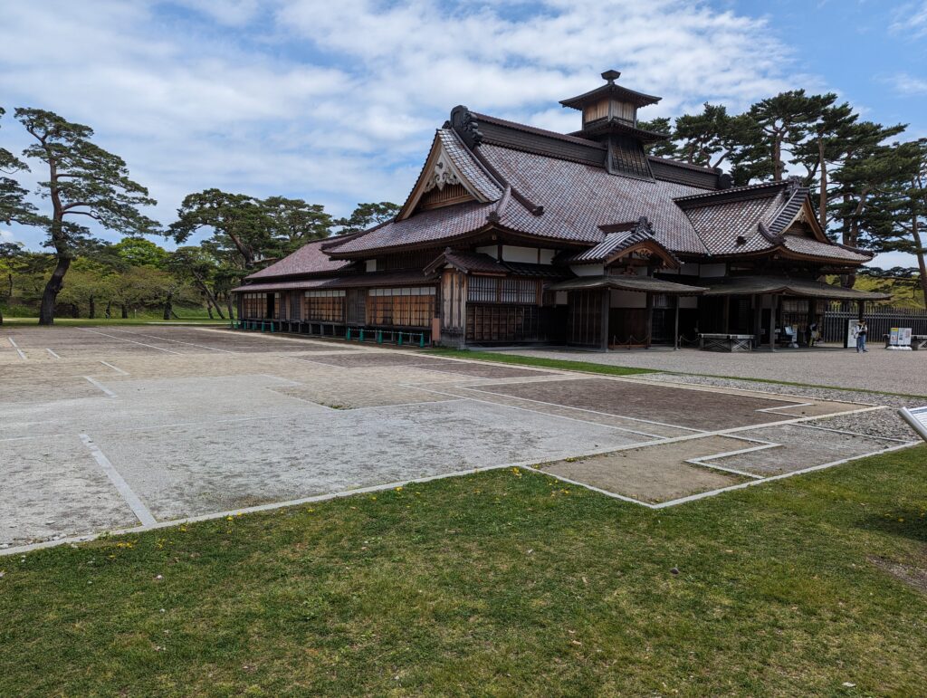 Le palais du magistrat fut en parti reconstruit avec les techniques traditionnelles (les japonais étant ce qu’ils sont, ils ont quand même pris le soin d’installer de magnifique toilettes sièges chauffants toutes options dedans, un véritable plaisir pour le cul). Le parc du fort abrite de nombreux cerisiers et est connu pour sa floraison tardive. Malgré tout on est arrivé trop tard ! Ouf, il existe certaines variétés de cerisier à floraison très tardive.