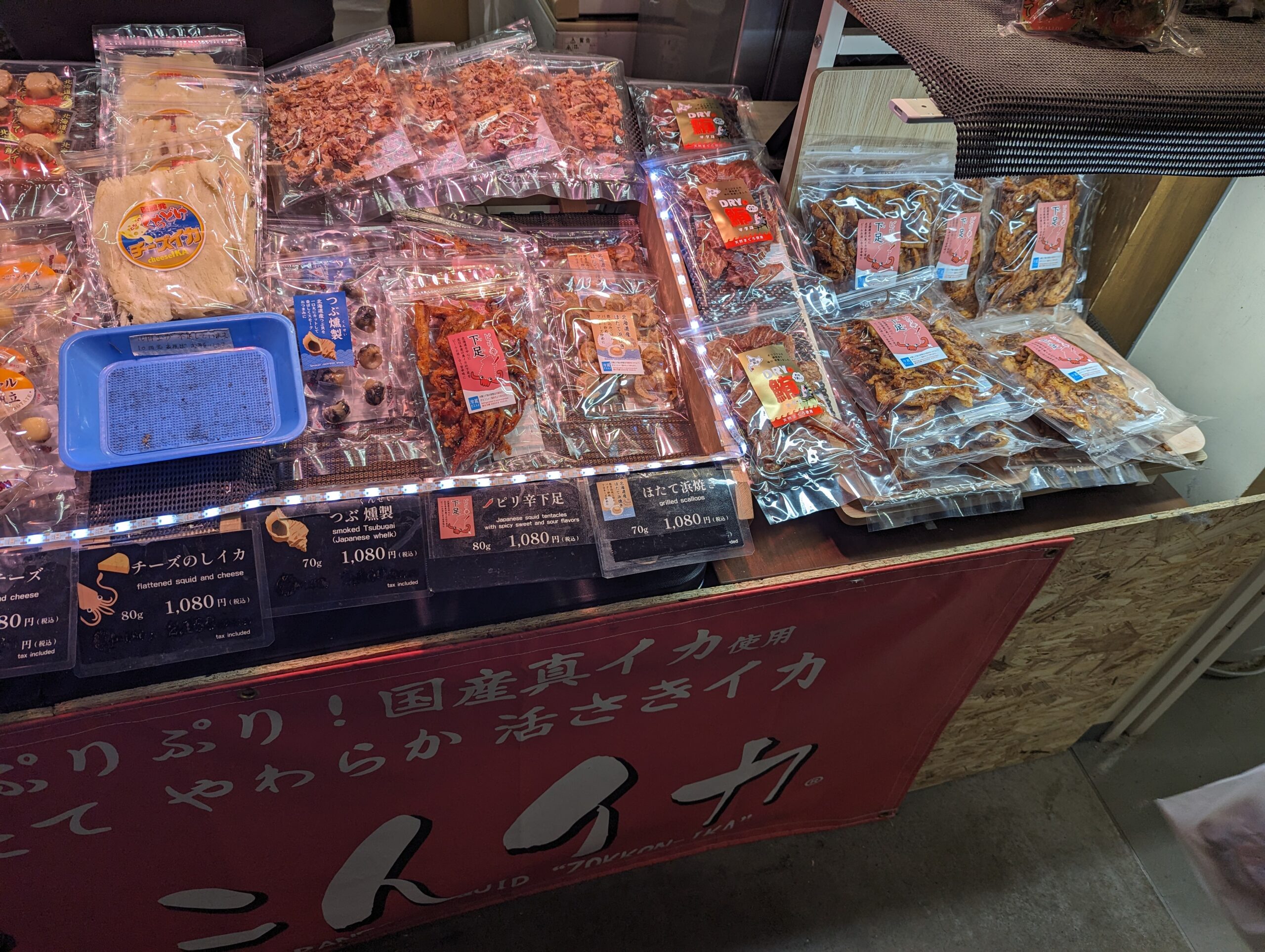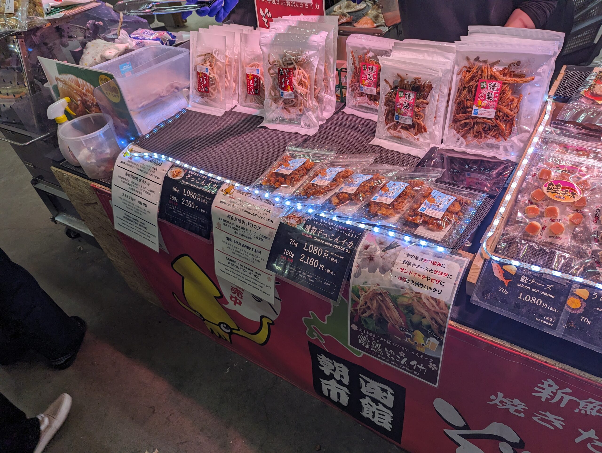 On part ce matin pour le marché d’Hakodate, pittoresque avec de nombreux étalages de poissons, poulpes, crabes et produits totalement inconnus !