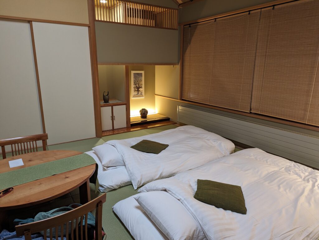 Après cette courte visite, direction le Ryokan avec onsen. Le Ryokan est un hôtel traditionnel de luxe. Notre réservation bénéficie d’un onsen privatif !