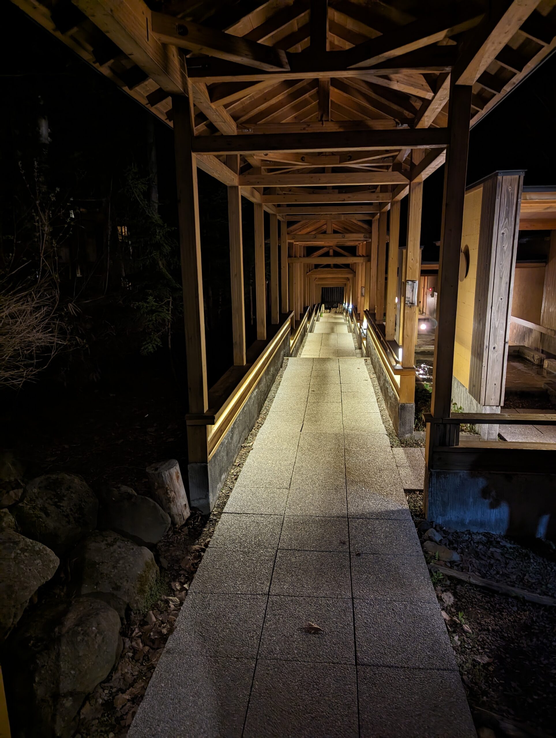Après cette courte visite, direction le Ryokan avec onsen. Le Ryokan est un hôtel traditionnel de luxe. Notre réservation bénéficie d’un onsen privatif !