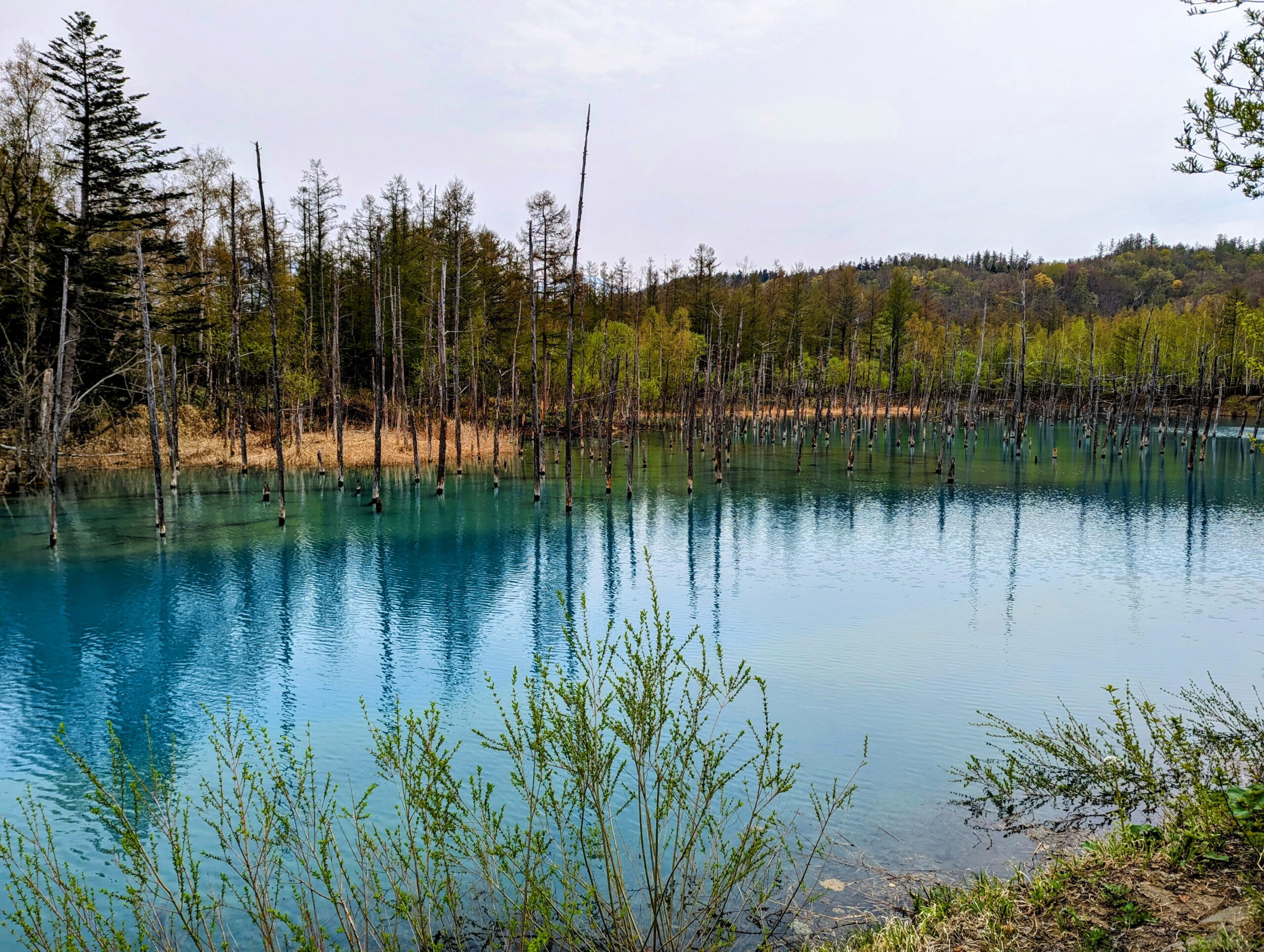 Cette petite ville abrite un lac connu pour sa couleur bleue vive. Ce lac artificiel est le fruit de la construction de barrages pour protéger les 2 villes des coulées de boue volcanique. Sa couleur bleue vient de la chute d’eau Shirahage non loin de là : l’eau ruisselle contre la falaise et charrie l’aluminium présent dans les parois. Mais ce n’est pas tout, d’autres substances, comme le sulfure, parviennent jusqu’au fond de l’étang, blanchissant ainsi les pierres.