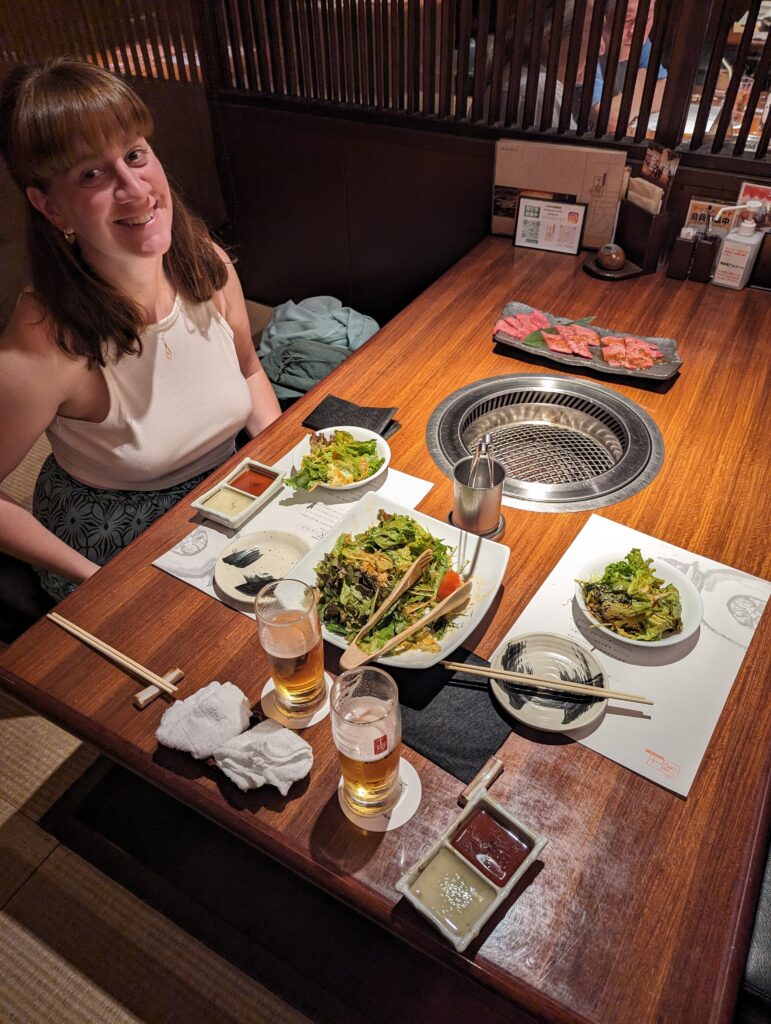 Le soir nous mangeons dans un resto barbecue japonais, nous cuisons nous même la viande sur la grille au centre de la table. La viande wagyu était vraiment délicieuse !