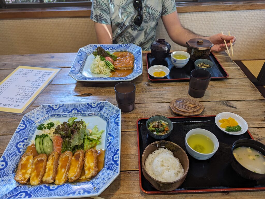 A 14h on mange dans un petit resto tranquille et sans touriste non loin de là, très bon repas complet.