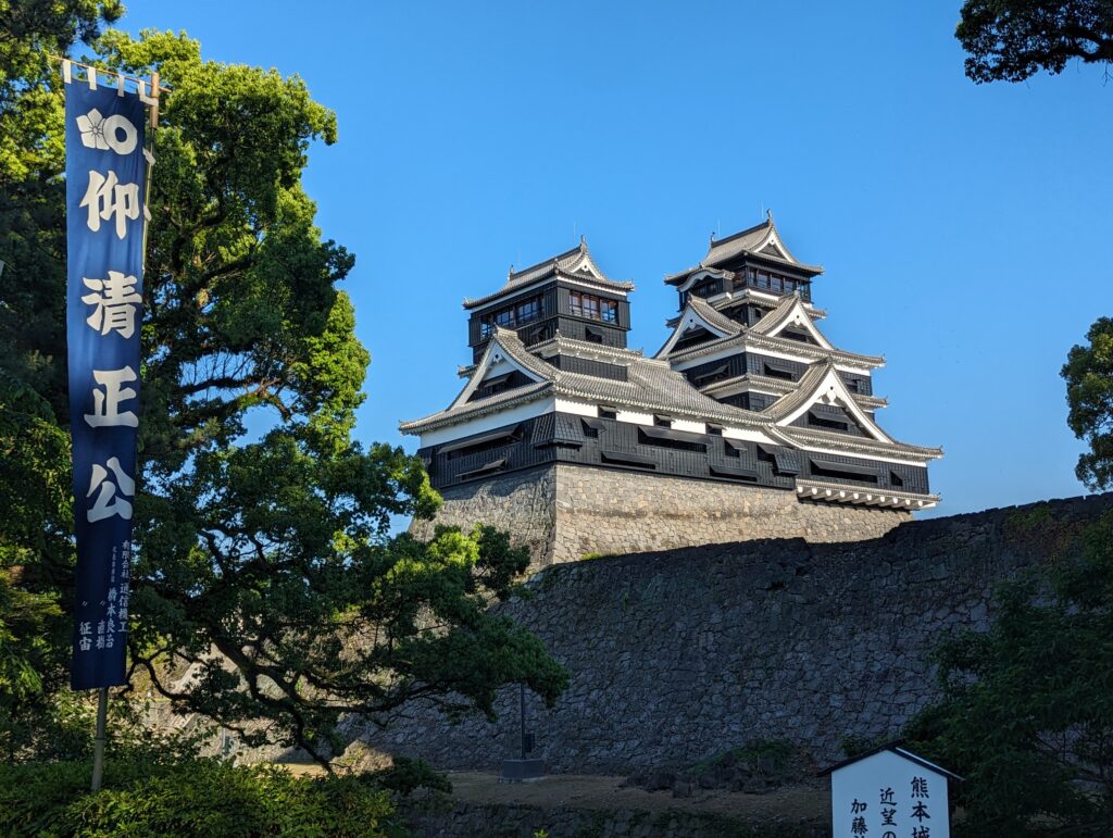 Célèbre pour ses fortifications, le château de Kumamoto a été érigé par Katô Kiyomasa, en 1606. L’édifice a subi de très lourds dégâts lors de la série de séismes qui a touché la région en 2016 et il est en cours de reconstruction.