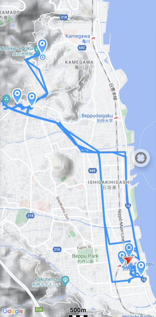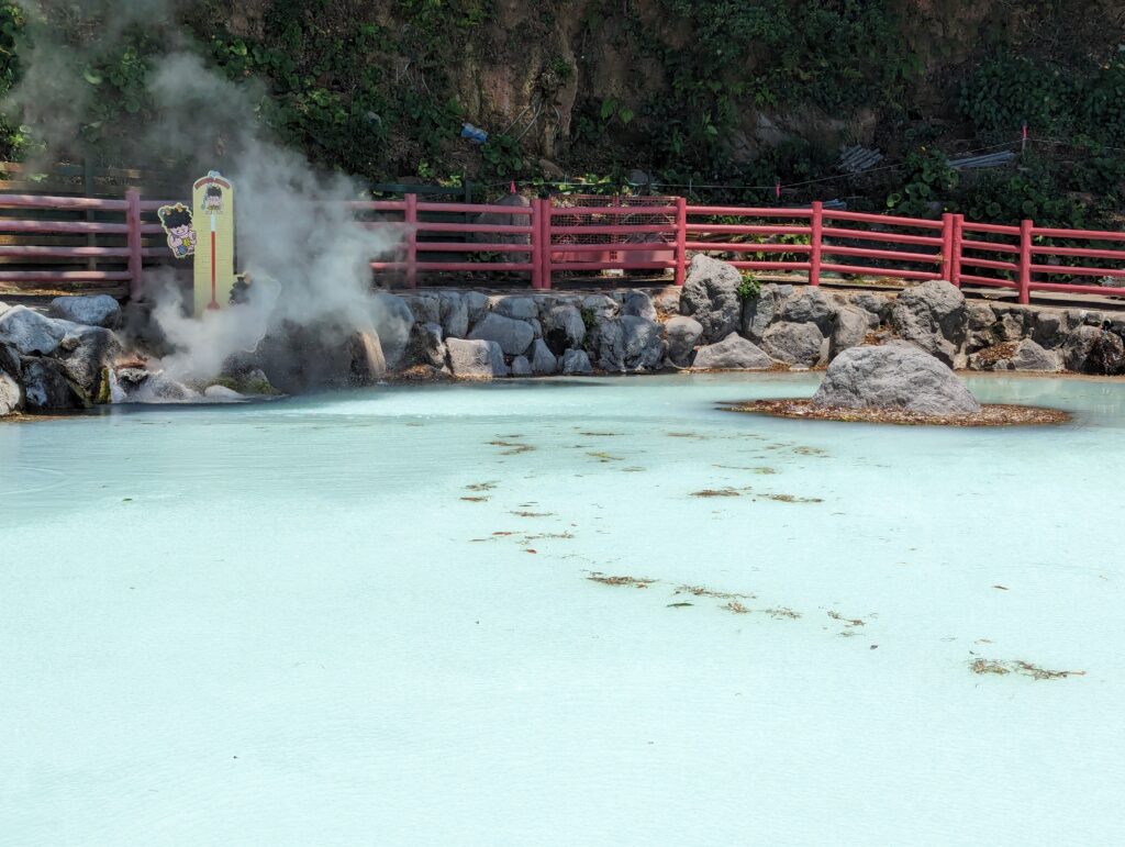 Aujourd’hui on se faitune journée plus calme, Beppu est une ville connue pour ses onsens (plus de 3000 dans la ville, ce qui lui vaut le statut de « ville la plus géothermique du monde », des fumées planent en permanence au-dessus de la ville.