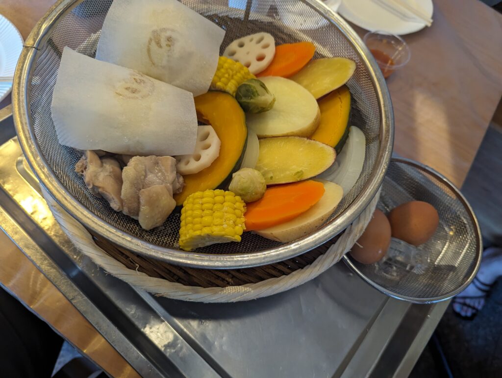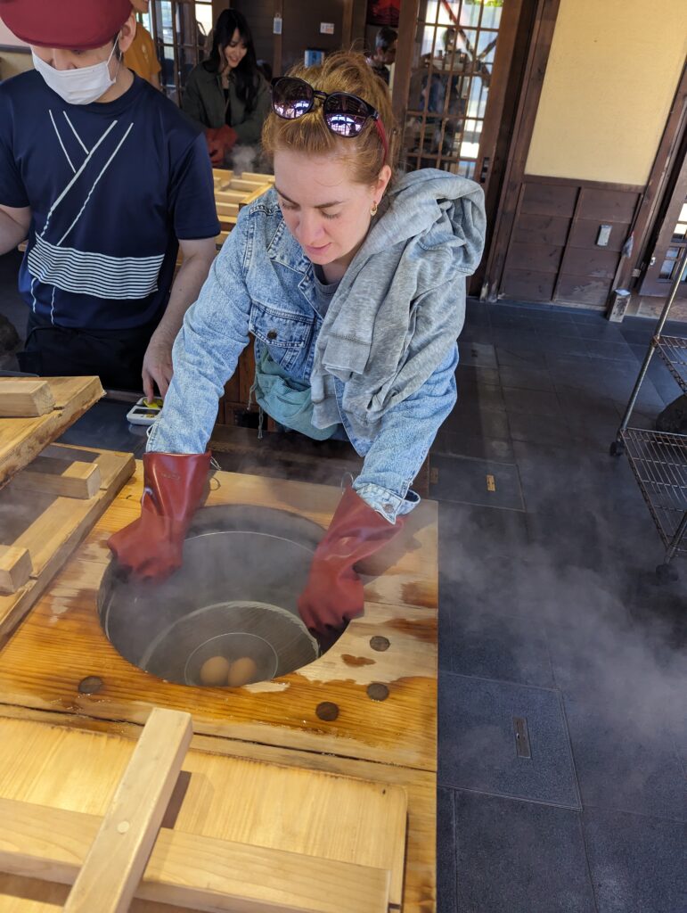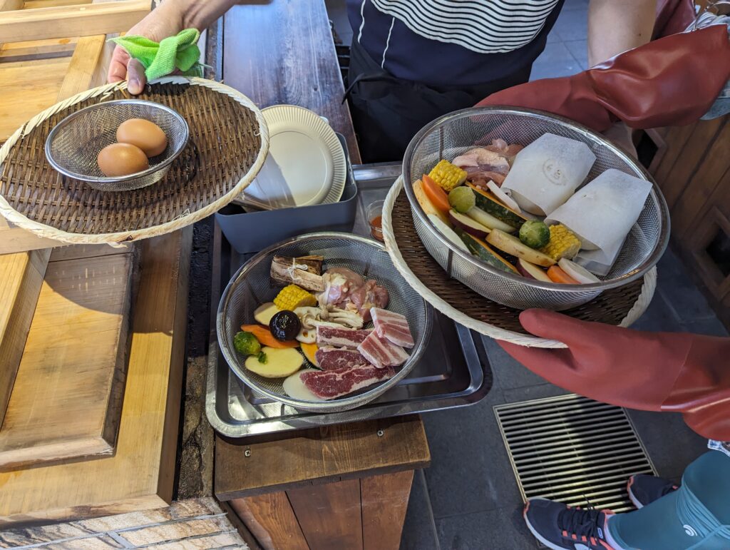 À midi on fait cuire nous même notre nourriture dans les vapeur chaudes naturelles des sources, expérience ludique !