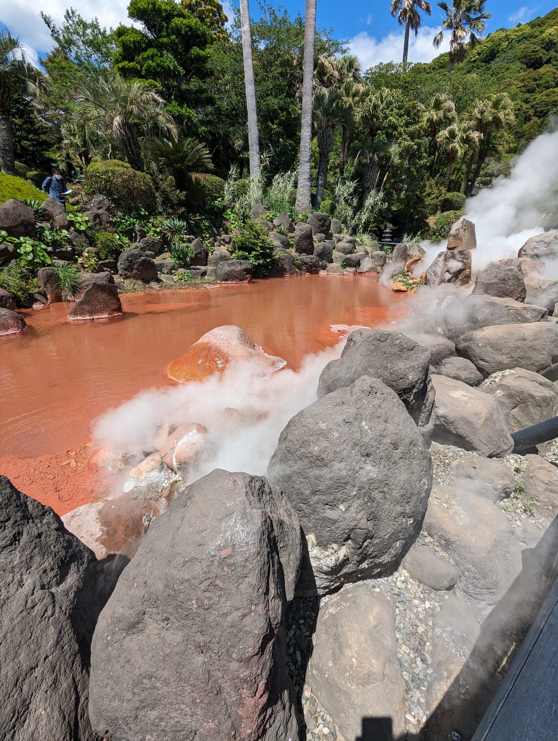 Aujourd’hui on se faitune journée plus calme, Beppu est une ville connue pour ses onsens (plus de 3000 dans la ville, ce qui lui vaut le statut de « ville la plus géothermique du monde », des fumées planent en permanence au-dessus de la ville.