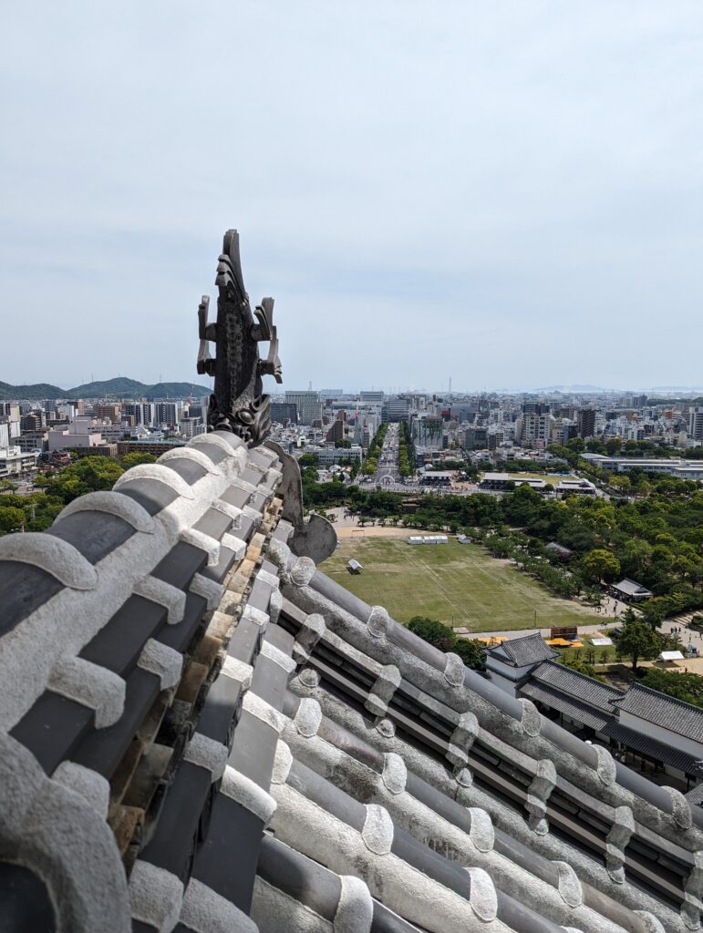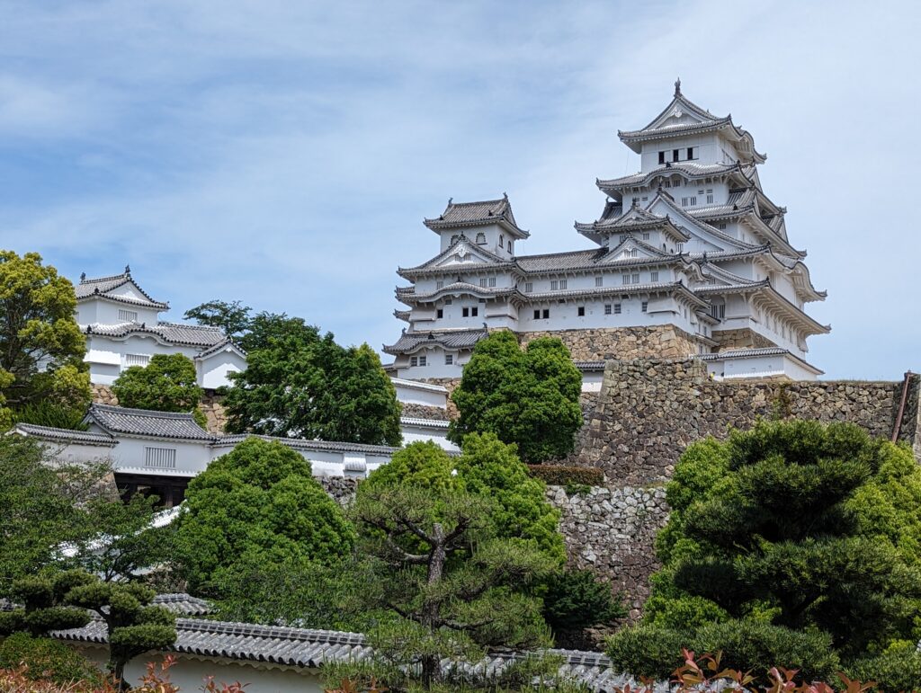 Puis on se décide à visiter le Château de Himeji, dit le « Château du héron blanc » une des merveilles du Japon, site classé a l’Unesco. Il est l’un des plus anciens château du Japon, le mieux conservé. Sa construction initiale remonte à plus de 600 ans mais l’achèvement tel qu’il l’est aujourd’hui date du début du 17e siècle. Il est magnifique. Le donjon fait 7 étages. Mais l’intérieur est vide, que du bois.