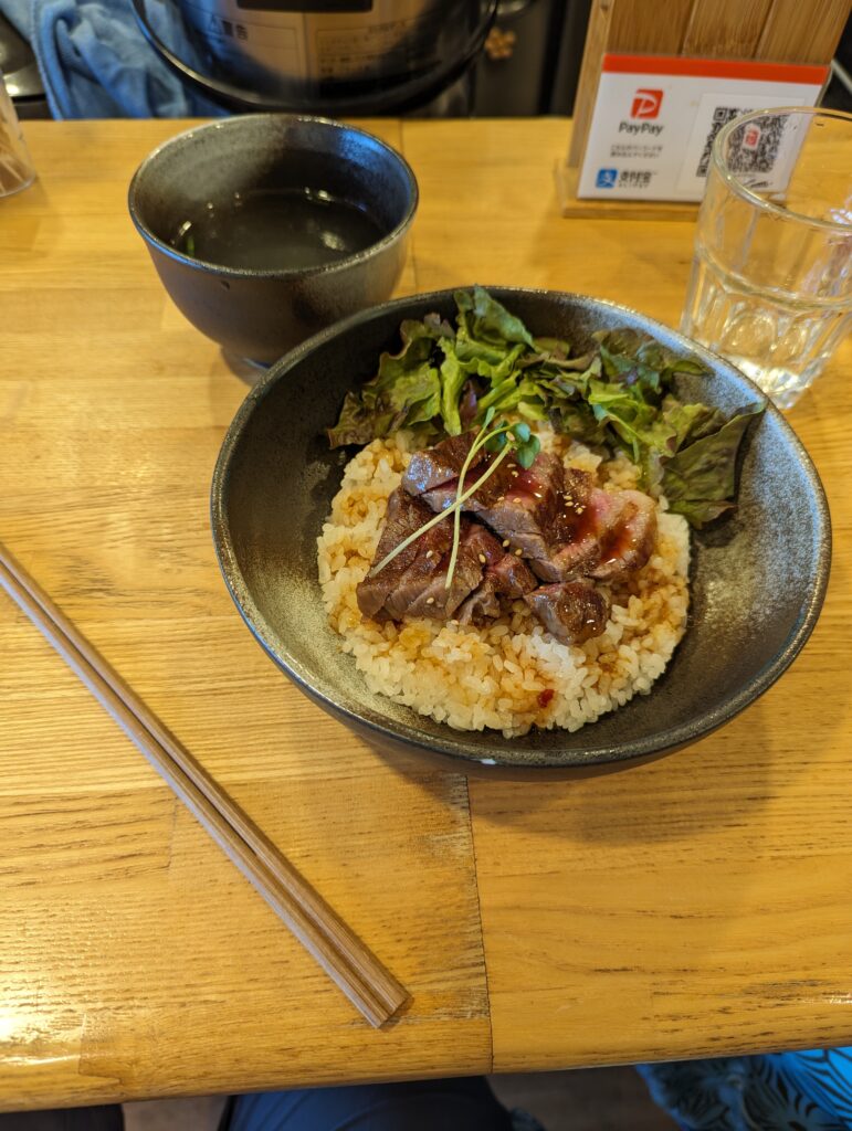 En suivant, on ressort et on se prend un petit plat de boeuf de Kobe. Très bon et fondant, ce n’est pas une légende ! On sent bien que la viande est persillée, c’est a dire assez grasse.