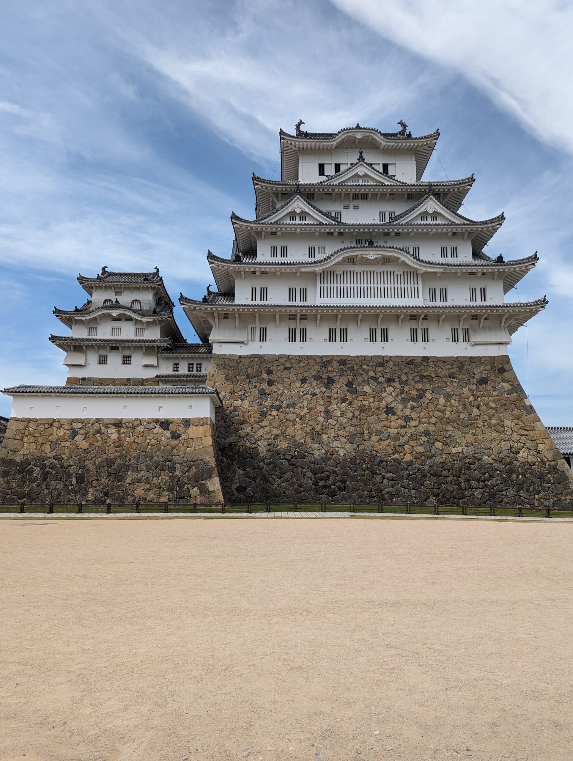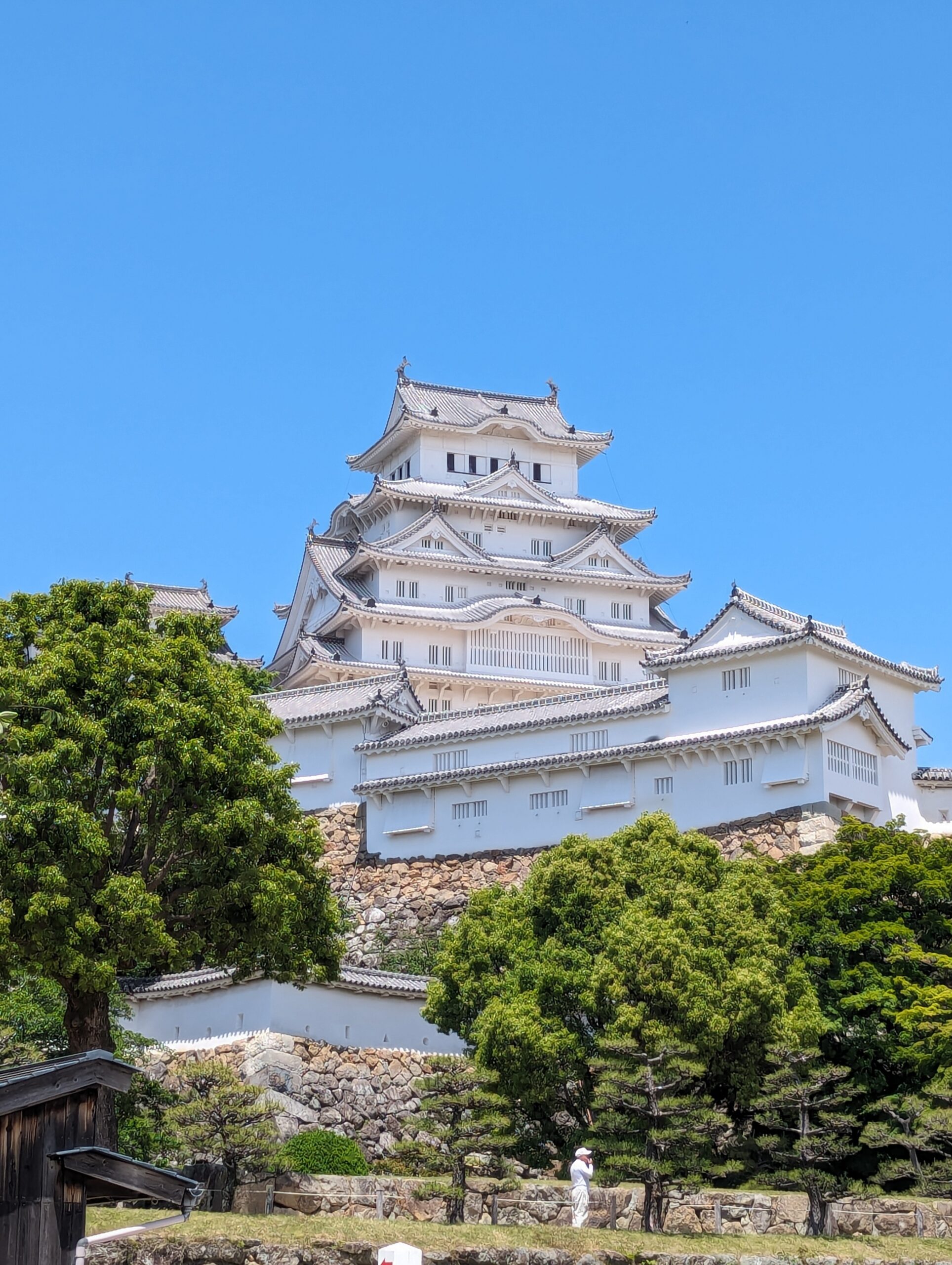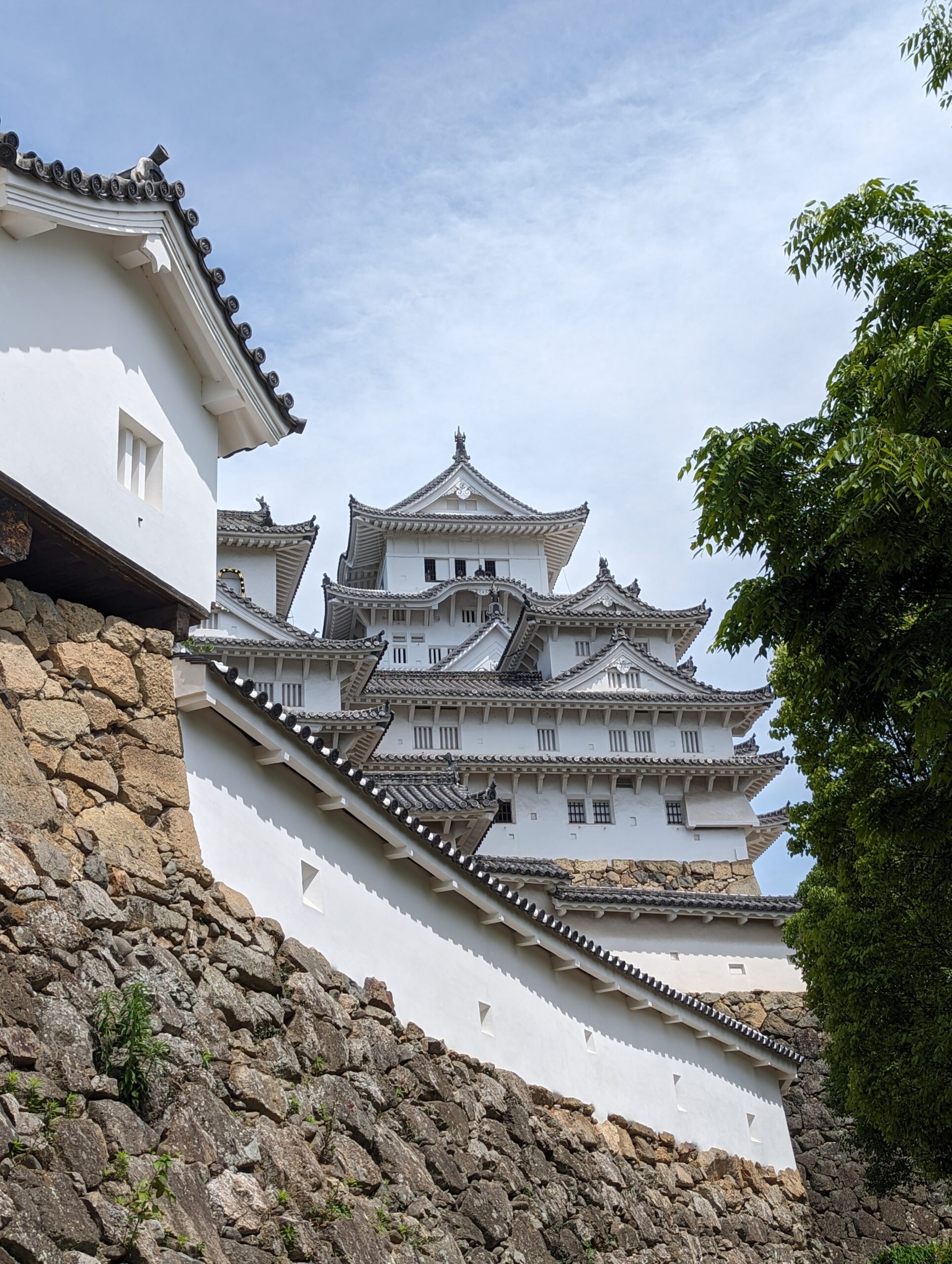 Puis on se décide à visiter le Château de Himeji, dit le « Château du héron blanc » une des merveilles du Japon, site classé a l’Unesco. Il est l’un des plus anciens château du Japon, le mieux conservé. Sa construction initiale remonte à plus de 600 ans mais l’achèvement tel qu’il l’est aujourd’hui date du début du 17e siècle. Il est magnifique. Le donjon fait 7 étages. Mais l’intérieur est vide, que du bois.