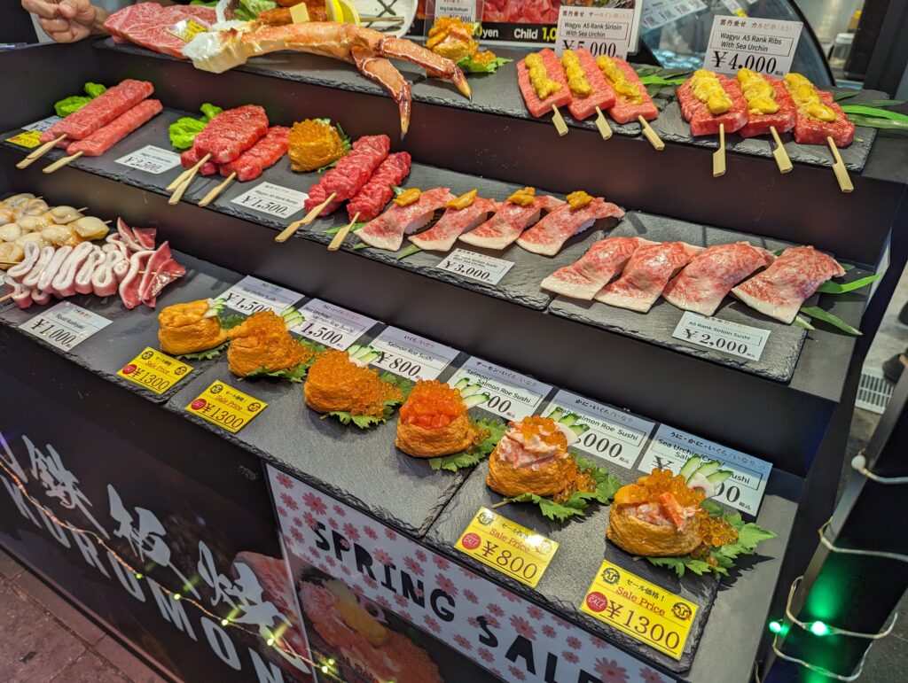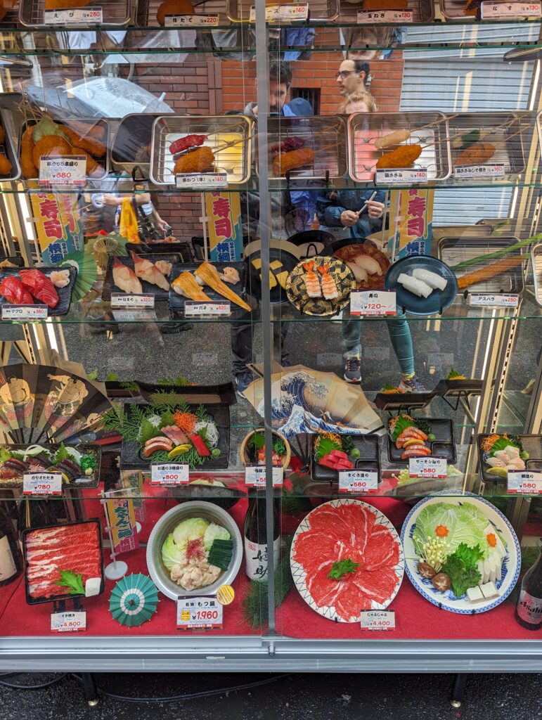 On est fasciné par la diversité culinaire de la ville. Et celle-ci est connue pour un art très particulier, les faux plats : en devanture, des répliques de ce que l’on peut manger à l’intérieur, parfois difficile de reconnaître le vrai du faux. Au dessus des magasins des automates géants pour attirer les passants. Les habitants de la ville prétendent avec fierté dépenser tout leur argent dans les restaurants !