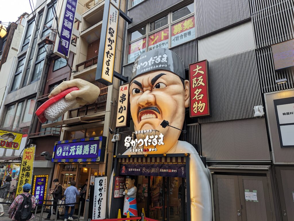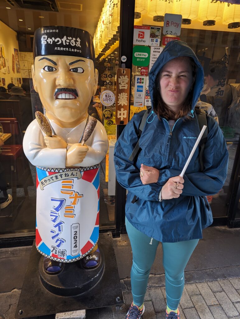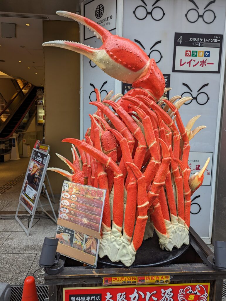 Après on passe aux choses sérieuses : le tourisme culinaire. On se met en route pour le quartier Dotonbiri. Les villes japonaises sont très organisées autours des transports en commun et notamment les gares,on retrouve autours de celles-ci des grands quartiers commerciaux couverts où se mélangent shopping et restaurants.