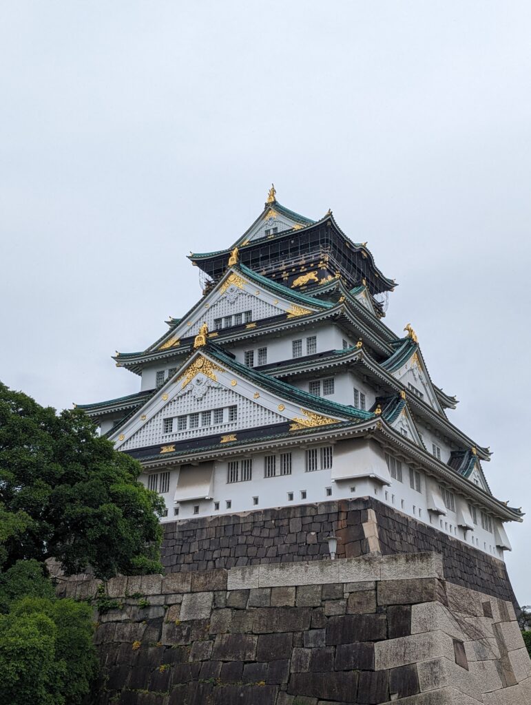 Nous commençons par une visite du château d’Osaka. Beau, mais moins que le Château du Héron blanc. Centre du pouvoir du Shoguna de la Famille Toyotomi. Il fut achevé en 1598. Restauré à de nombreuses reprises.