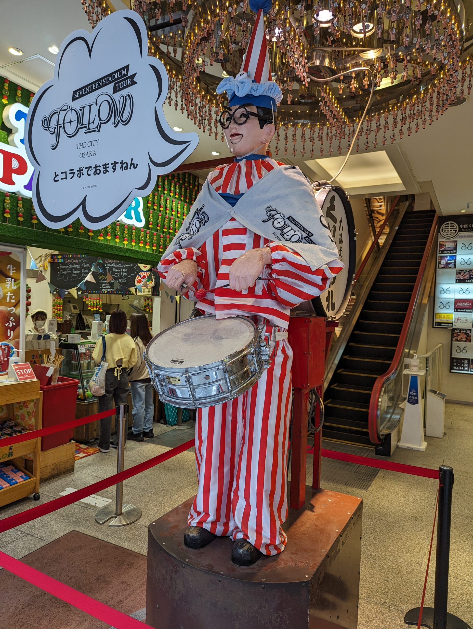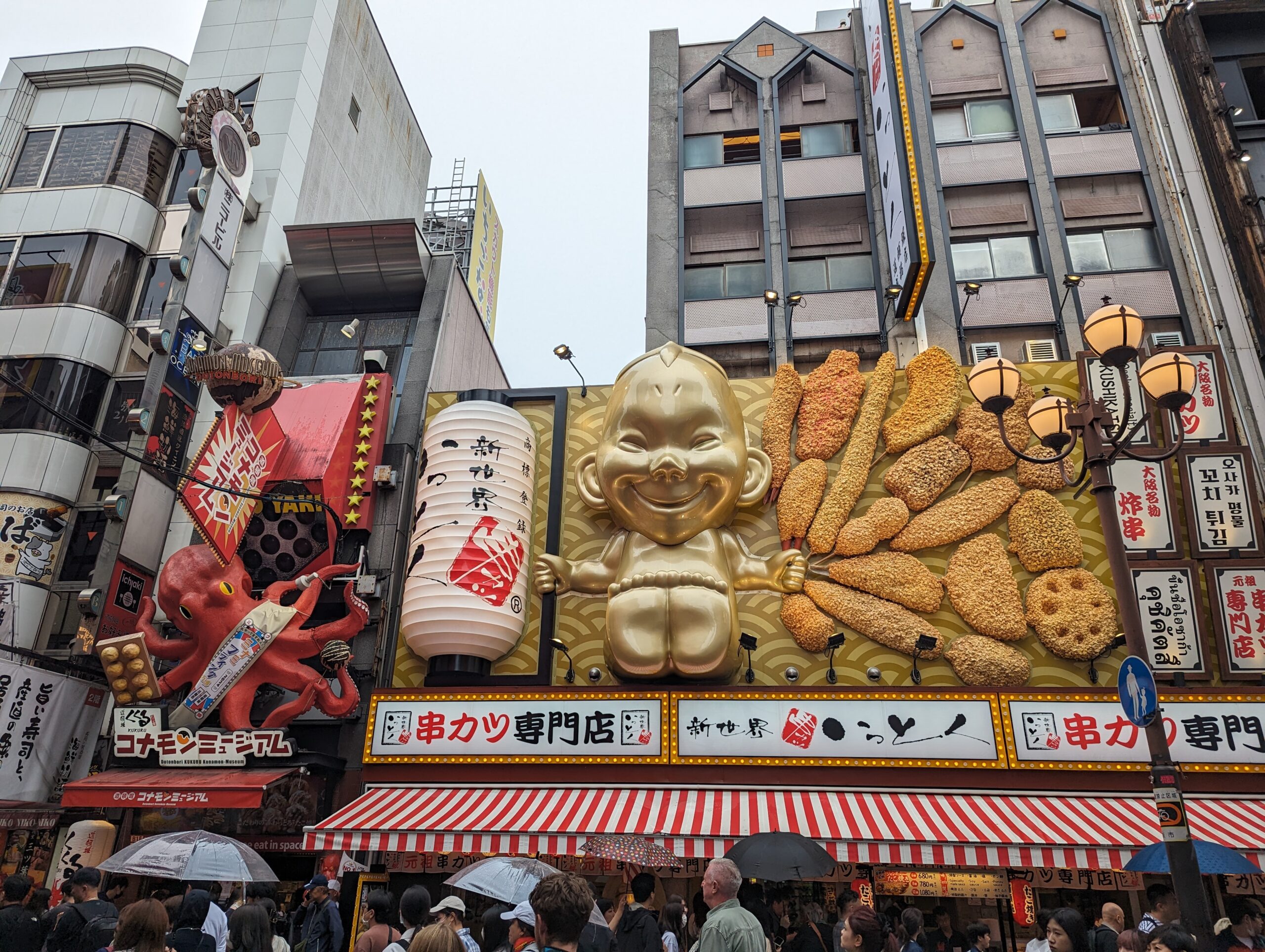 Après on passe aux choses sérieuses : le tourisme culinaire. On se met en route pour le quartier Dotonbiri. Les villes japonaises sont très organisées autours des transports en commun et notamment les gares,on retrouve autours de celles-ci des grands quartiers commerciaux couverts où se mélangent shopping et restaurants.