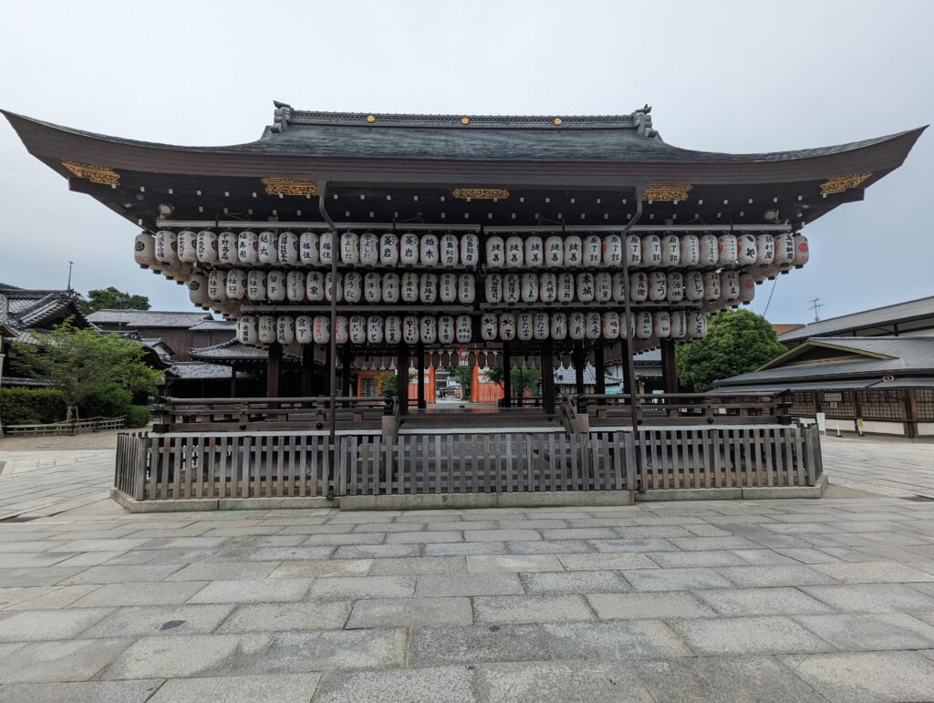 On s’arrête au temple Sanctuaire Yasaka (date de 876) juste à côté du quartier Gion dans un parc sympa.