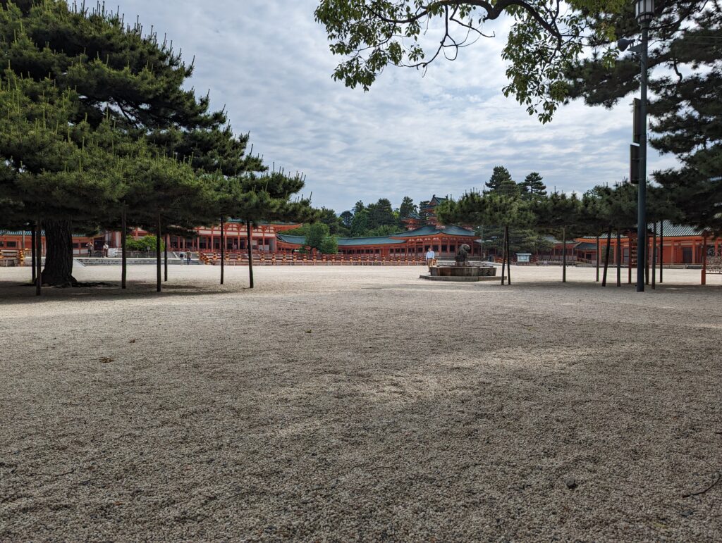 On va maintenant à Heian Jingu et sa gigantesque tori, temple de 1895 à la mémoire du cinquantième empereur, Kanmu. De beaux jardins adjacents.
