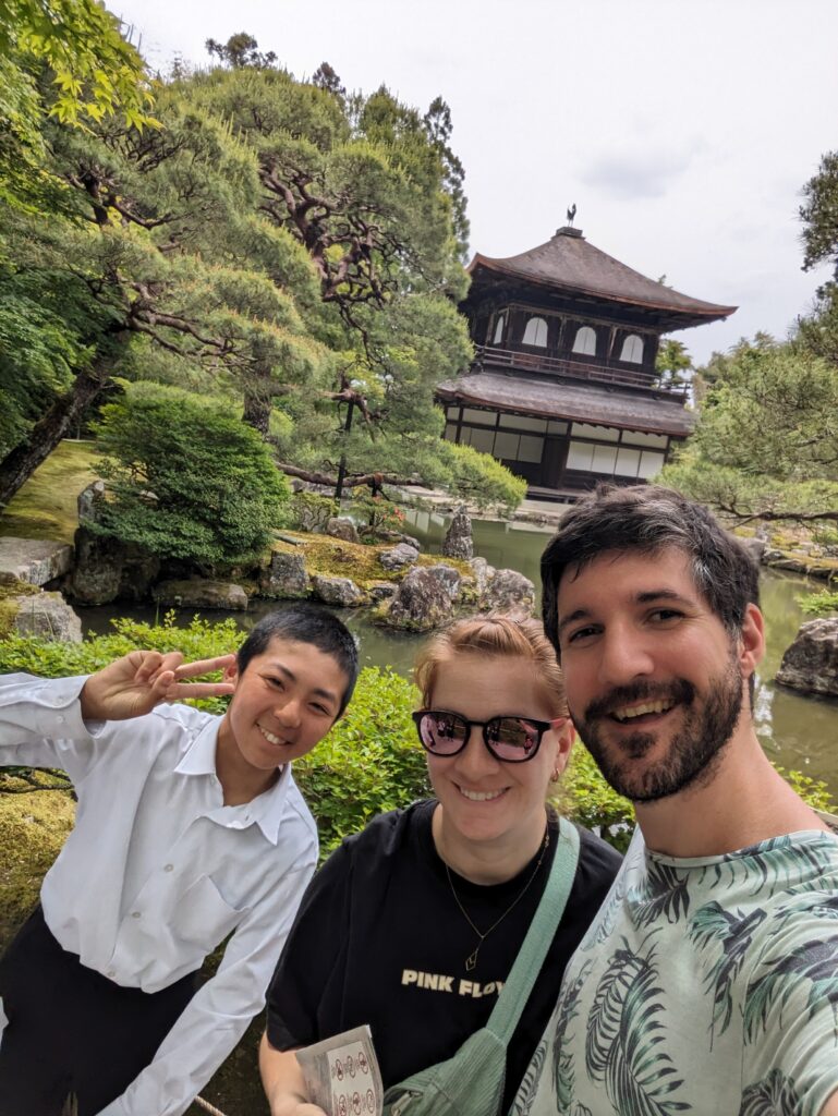 Nous arrivons au Gingaku-jin, le « pavillon d’argent », un peu décevant au vue de sa réputation mais de belles photos quand même surtout quand un élève japonais nous photo bomb.