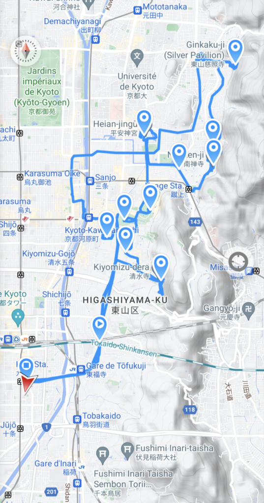 En voulant aller au point suivant on croise l’énorme complexe de temples chion-in (date de 1234) qu’on avait pas prévu de visiter, qu’à cela ne tienne on fait un détour, on aura l’opportunité d’y croiser une cérémonie bouddhiste et entendre des champs de prières, personne aux alentours !