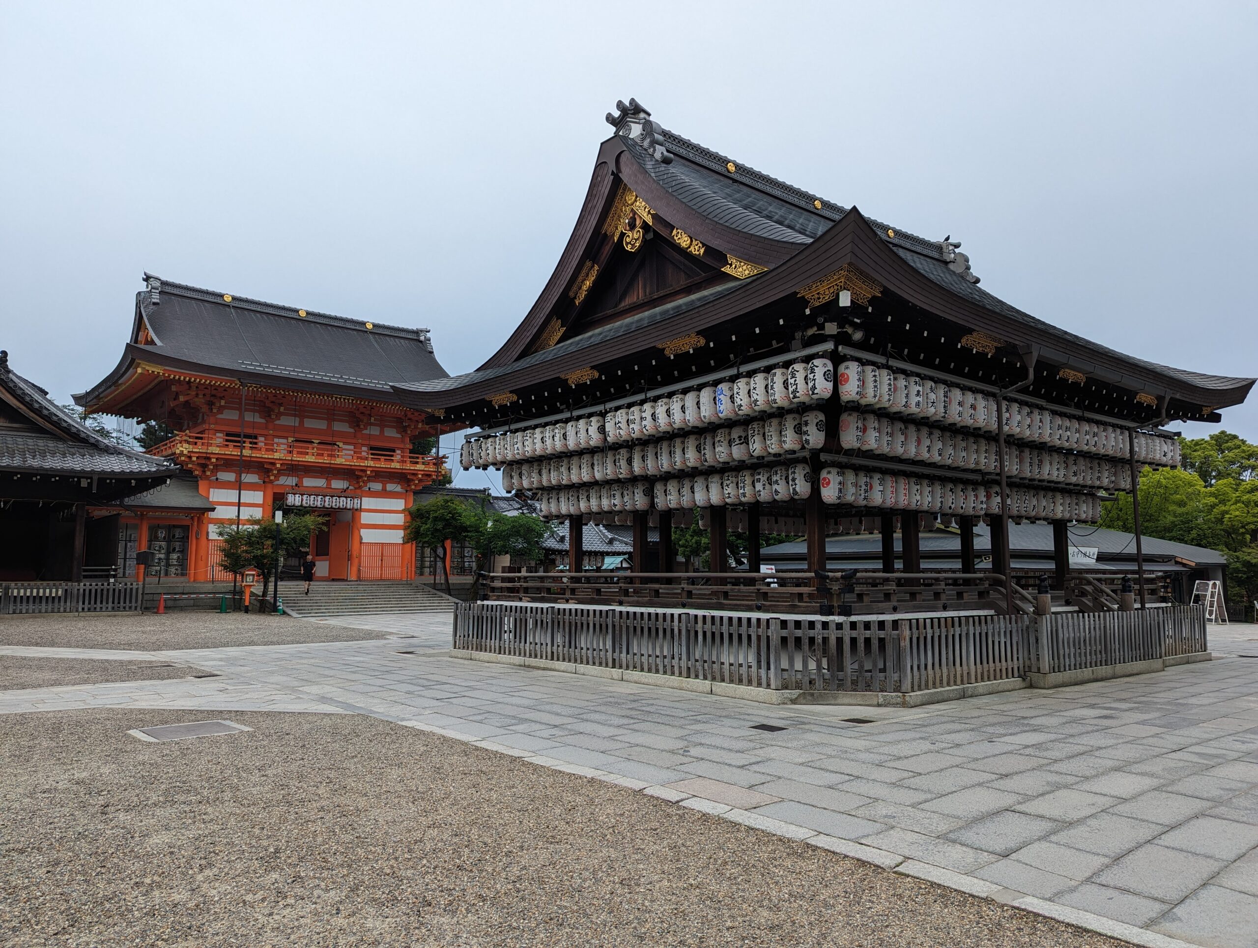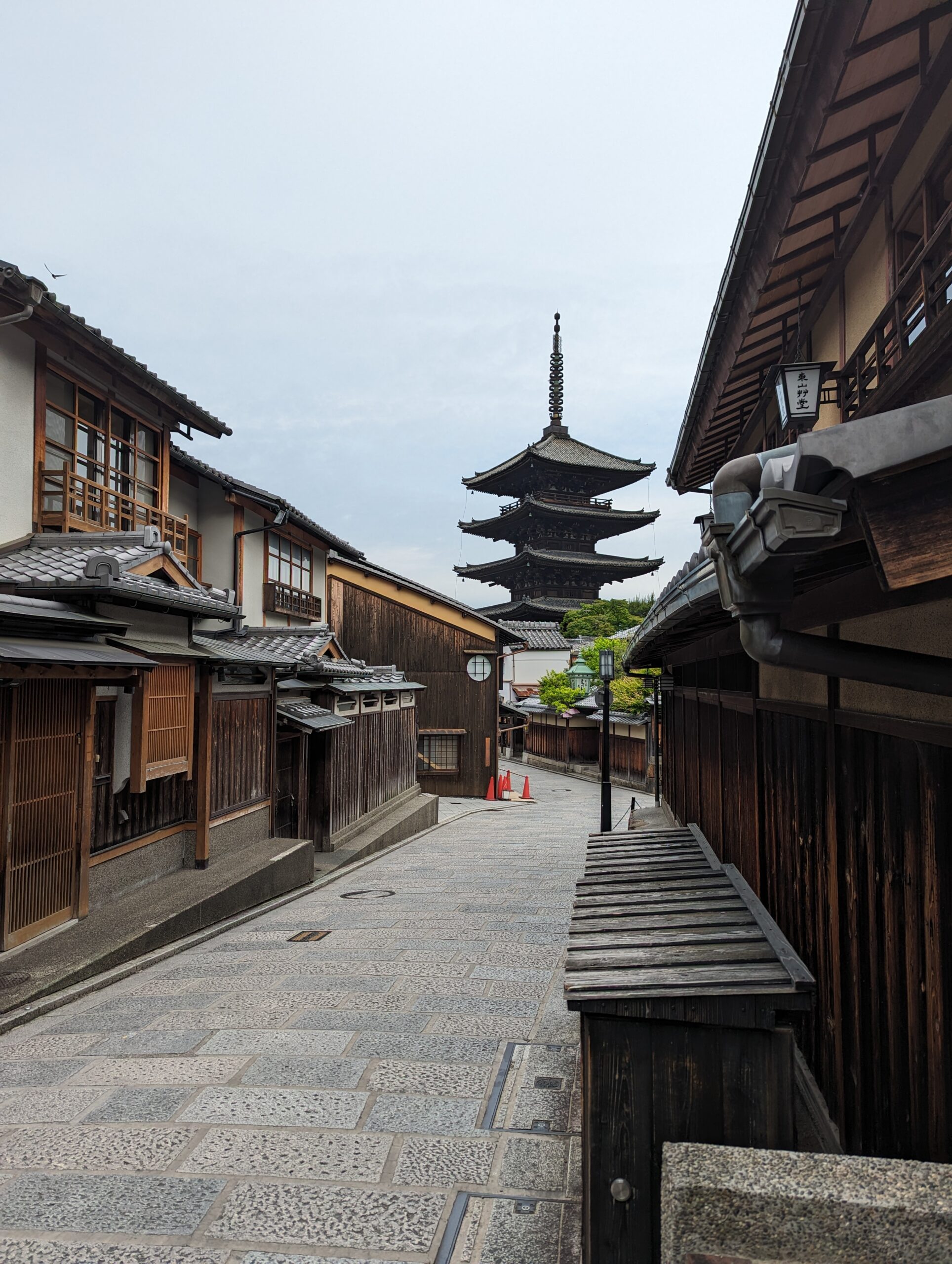 On s’arrête au temple Sanctuaire Yasaka (date de 876) juste à côté du quartier Gion dans un parc sympa.