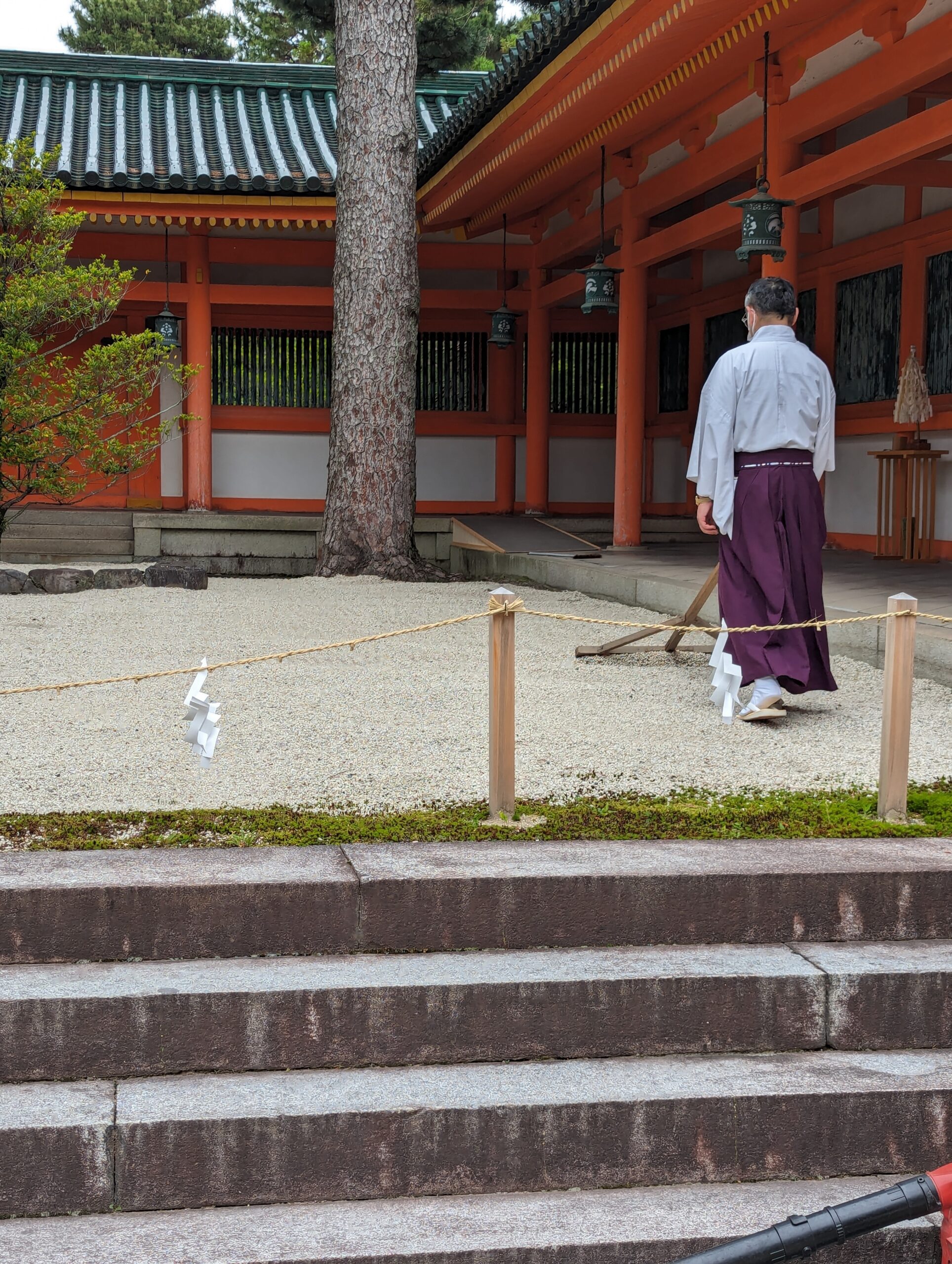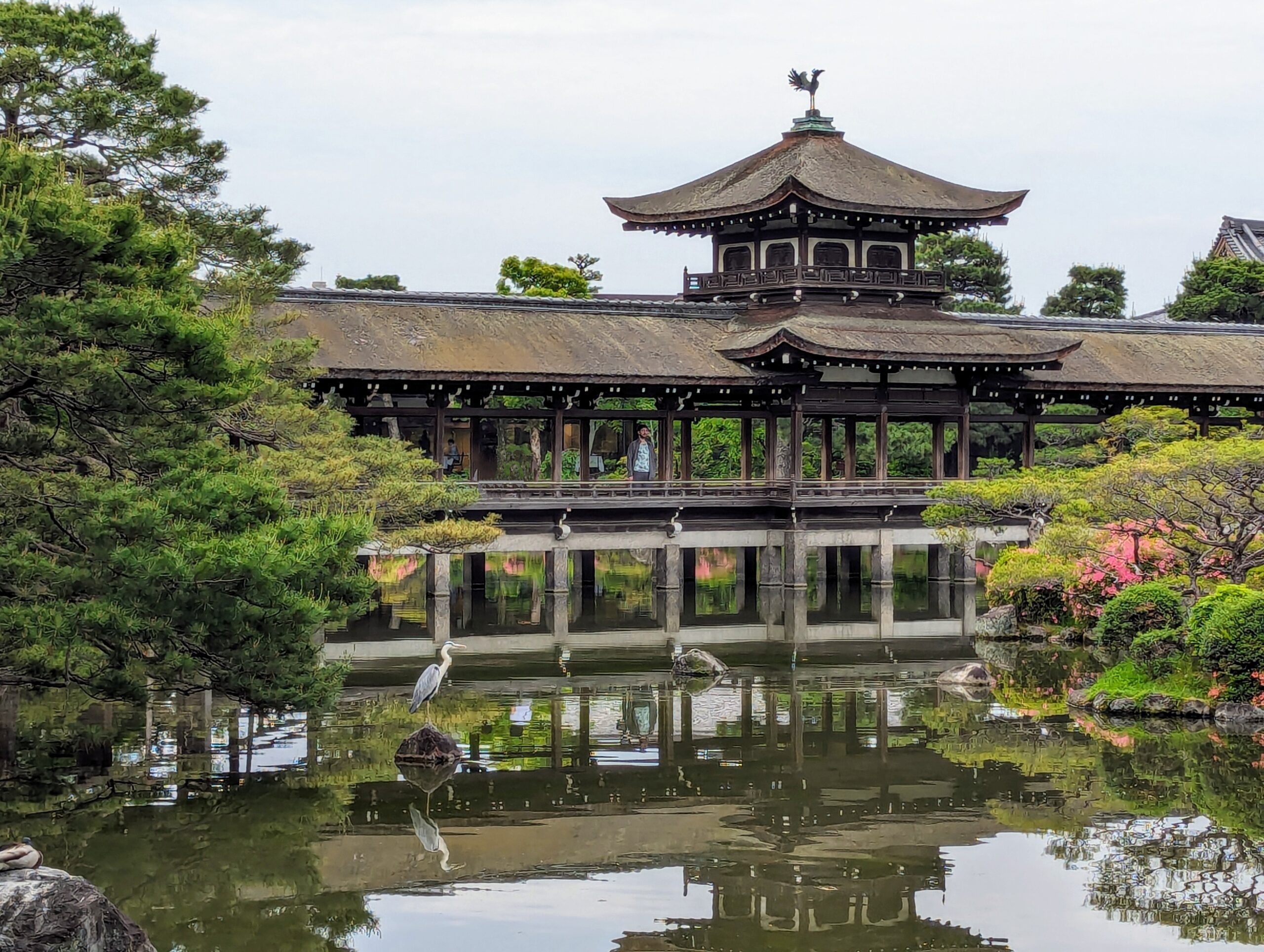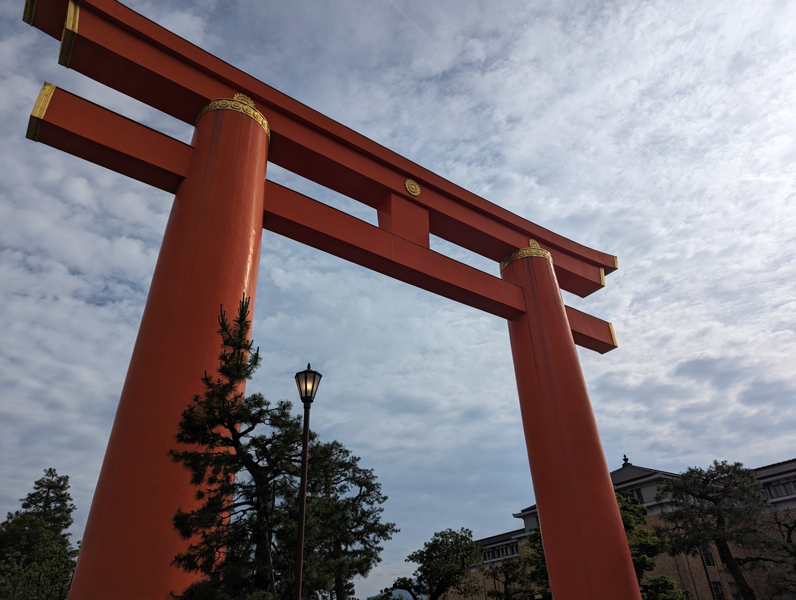 On va maintenant à Heian Jingu et sa gigantesque tori, temple de 1895 à la mémoire du cinquantième empereur, Kanmu. De beaux jardins adjacents.
