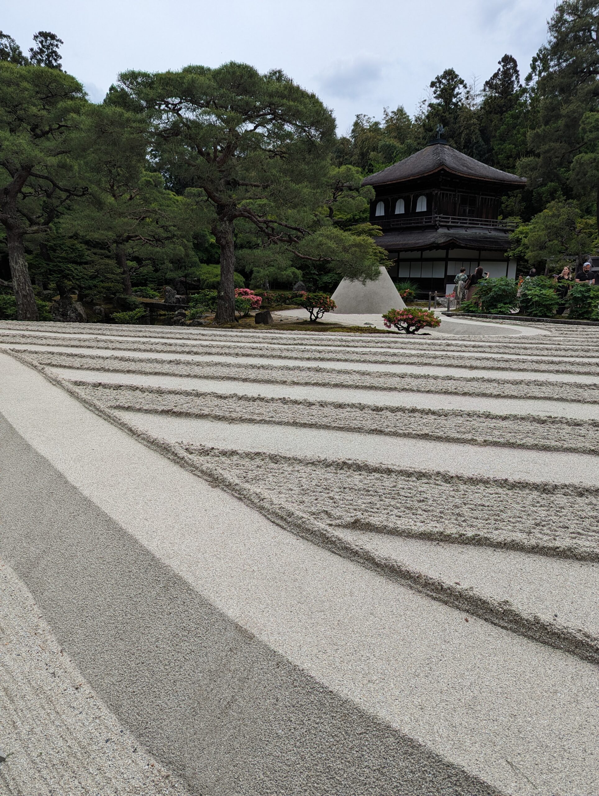 Nous arrivons au Gingaku-jin, le « pavillon d’argent », un peu décevant au vue de sa réputation mais de belles photos quand même surtout quand un élève japonais nous photo bomb.