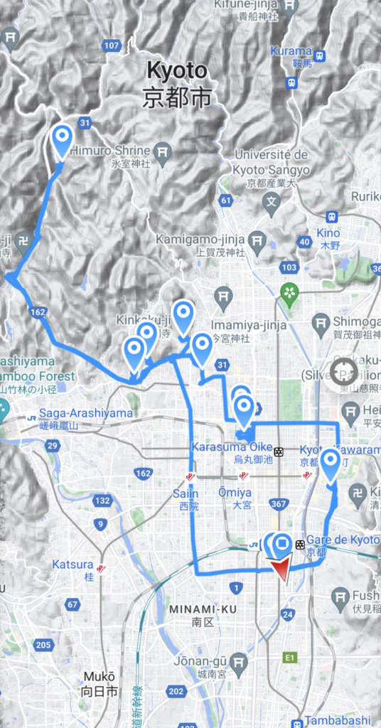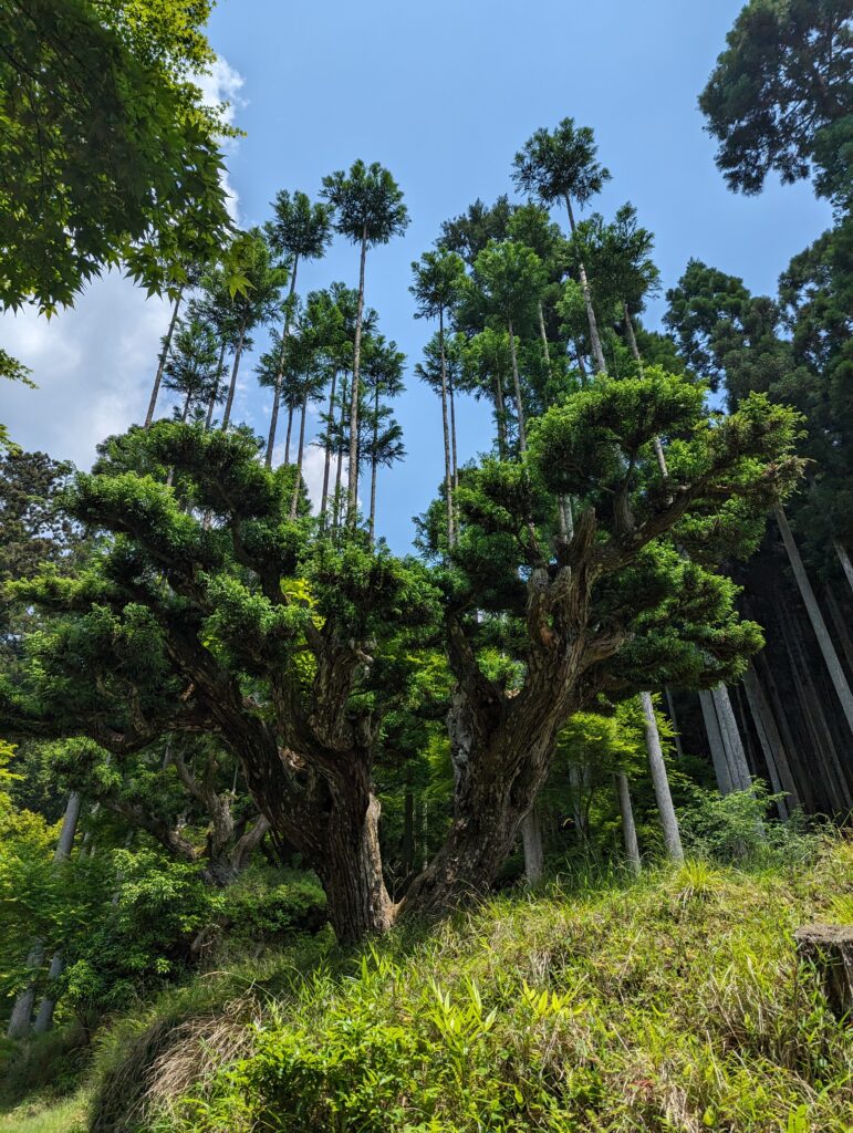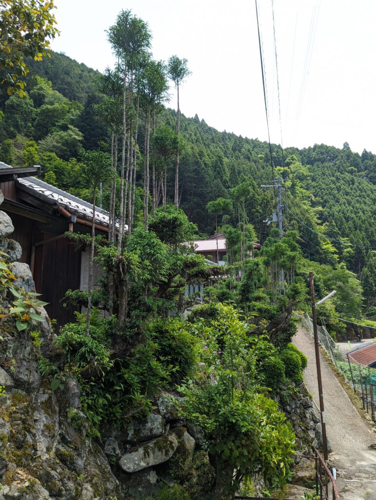 Poupou décide de nous emmener loin des sentiers batus et l’on va donc voir Kitayama Big Daisugi, au nord de Kyoto dans les montagnes, où l’on peut observer des arbres qui poussent sur des arbres. C’est une technique japonaise (daisugi) bien particulière où ils sélectionnent les tiges les plus verticales pour les replanter ensuite. On a pu y voir aussi des maisons en bois semi-abandonnées. Par contre, on a pas vu un chat dans le petit village, ça change de Kyoto.