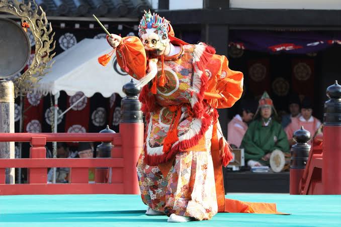 - Bugaku : danse traditionnelle à la Cour de l’empereur depuis plus de 1200 ans. Il a fallu beaucoup de self contrôle pour ne pas rire. La danse masquée était convenable, mais le capharnaüm des 5 musiciens désynchronisés, avec des sons stridents ne nous a pas convaincu. Peut-être n’avons nous pas l’oreille assez éduquée pour ça ?