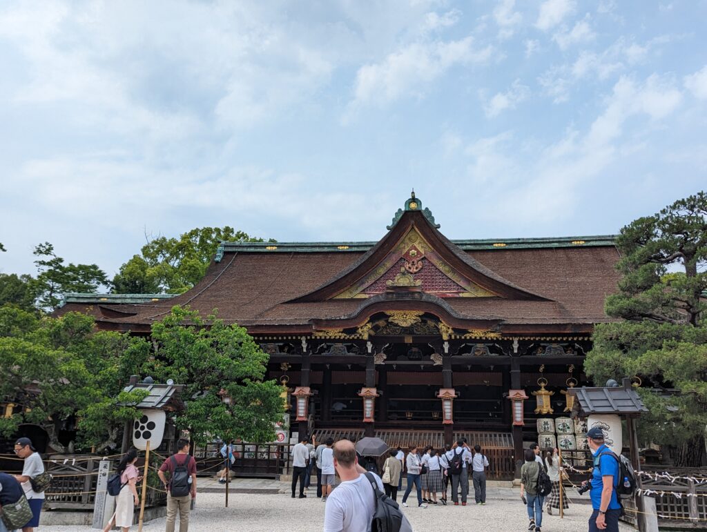 On repart ensuite à Kyoto, on passe rapidement par Kitano Tenmangū. Temple shintoïste sur lequel on ne s’attarde pas.