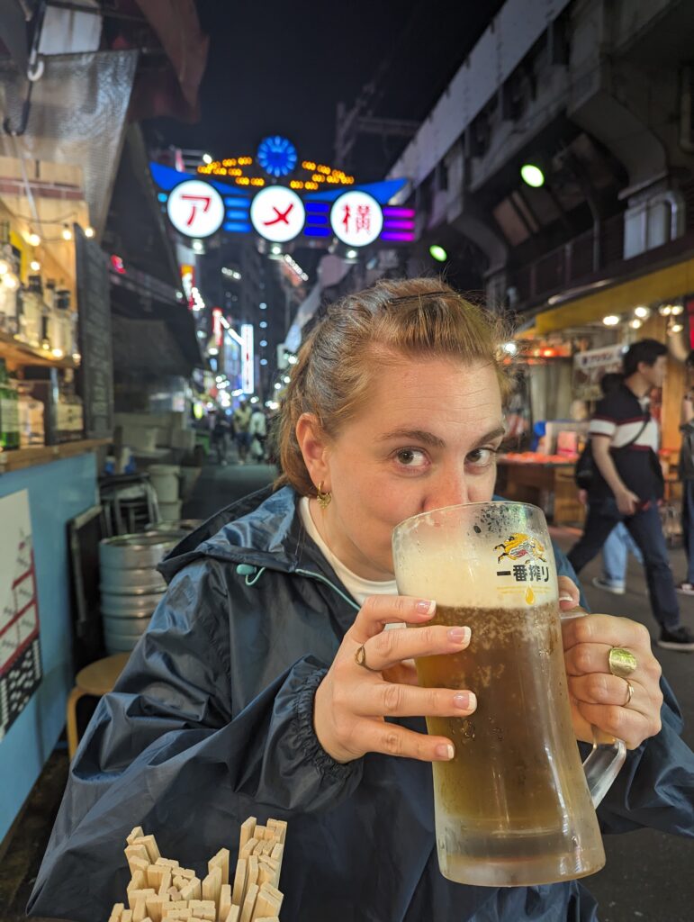 Et on finit la soirée à Tokyo en mangeant des sushis et en buvant une grosse biere.