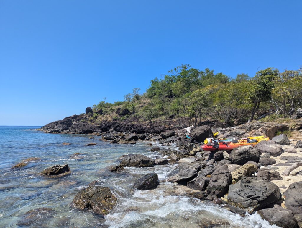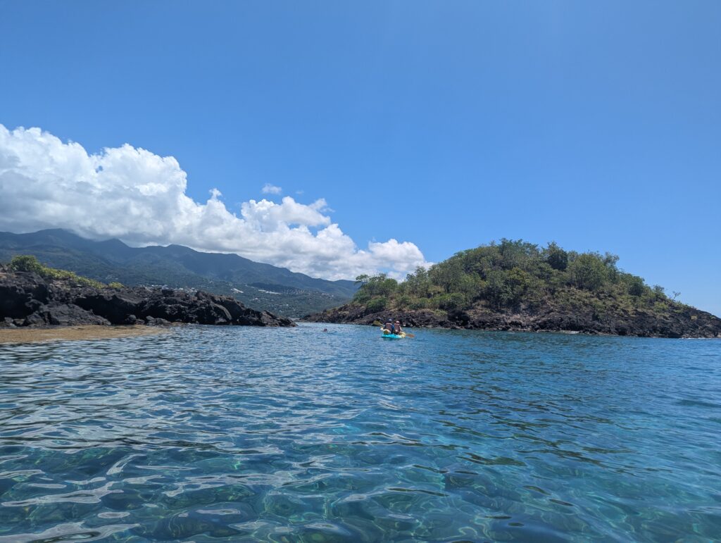 Nous décidons aujourd’hui de louer des kayaks pour aller dans la réserve naturelle Cousteau, dans laquelle se trouve les ilets pigeon. Nous y ferons du snorkeling. Poupou malade restera se reposer au bungalow pour la matinée.