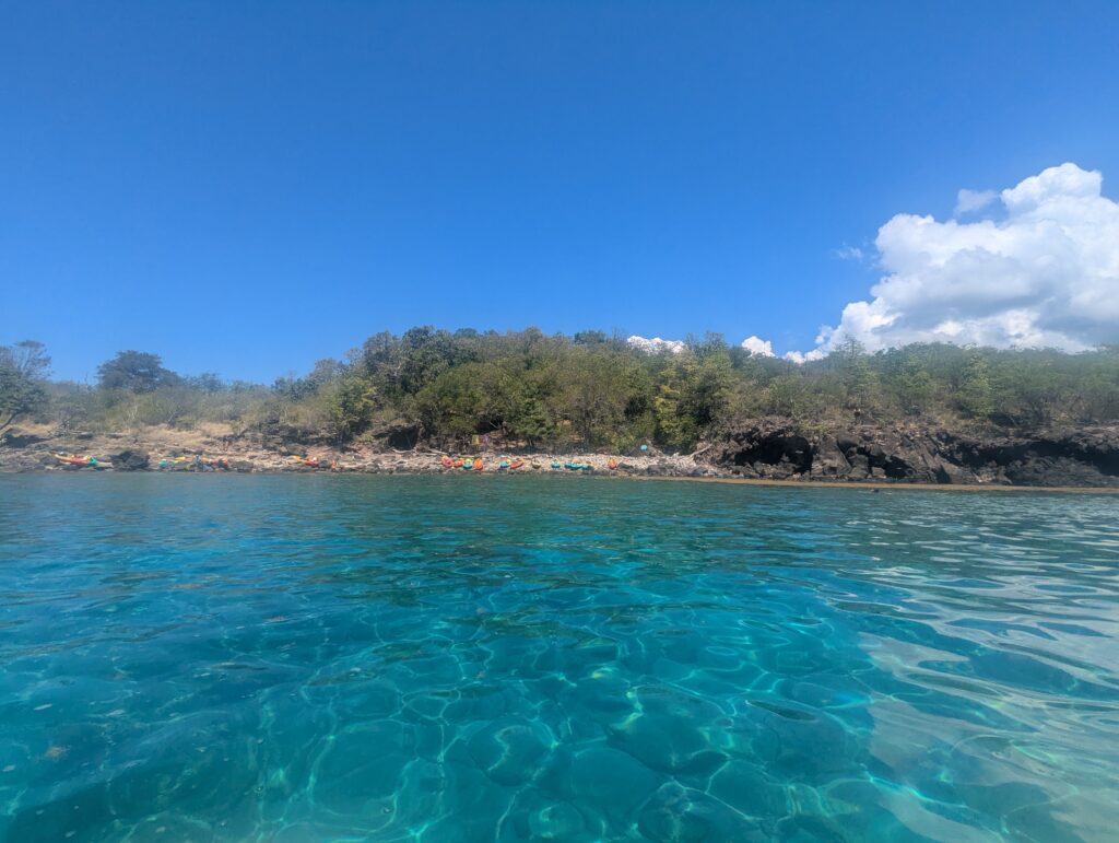 Pour l’après-midi nous partons, avec poupou cette fois, à une plage non loin, toujours dans la réserve Cousteau, pour admirer les tortues marines qui viennent paisiblement brouter les algues de mer. Visiblement, celles-ci sont habituées aux touristes et ne semblent pas trop dérangées par notre présence, elles se contentent de nous regarder en coin d’un air méfiant quand, en remontant reprendre leur respiration, on les approche d’un peu trop.