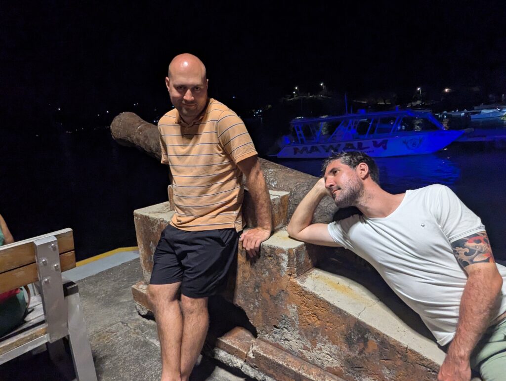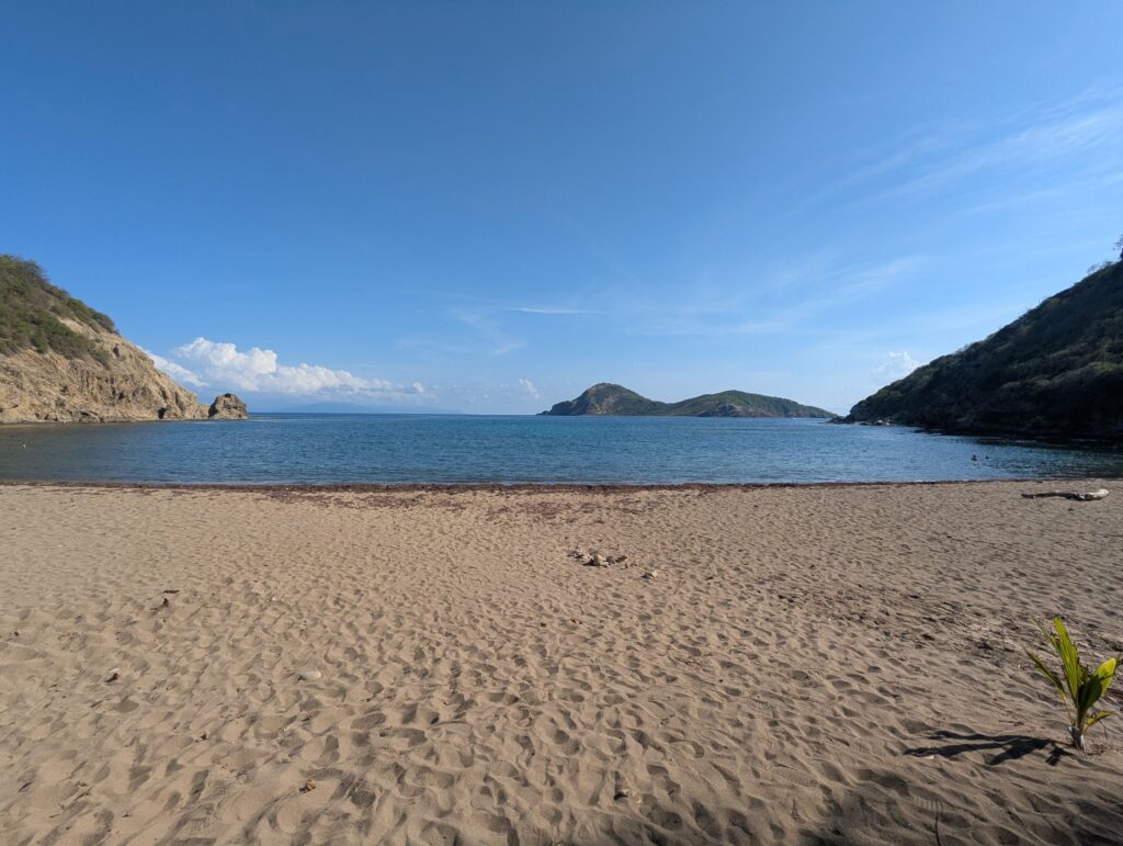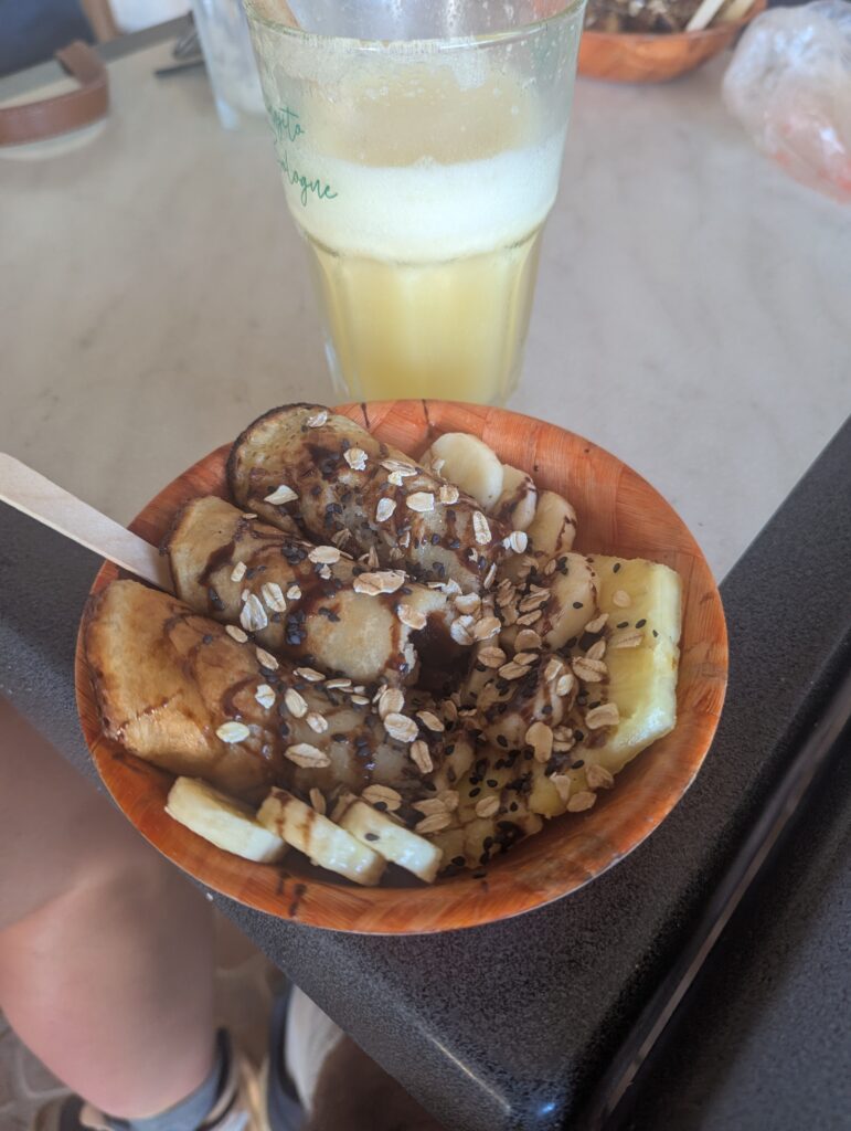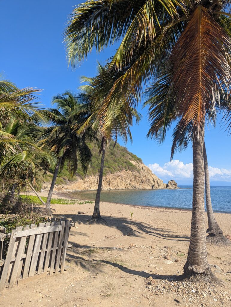 Ensuite on va à l’anse du figuier, petite plage tranquille, presque déserte avec des cocotiers. Par contre pas de poissons à voire. Arthur arrive à décrocher une noix de coco et on se régale.