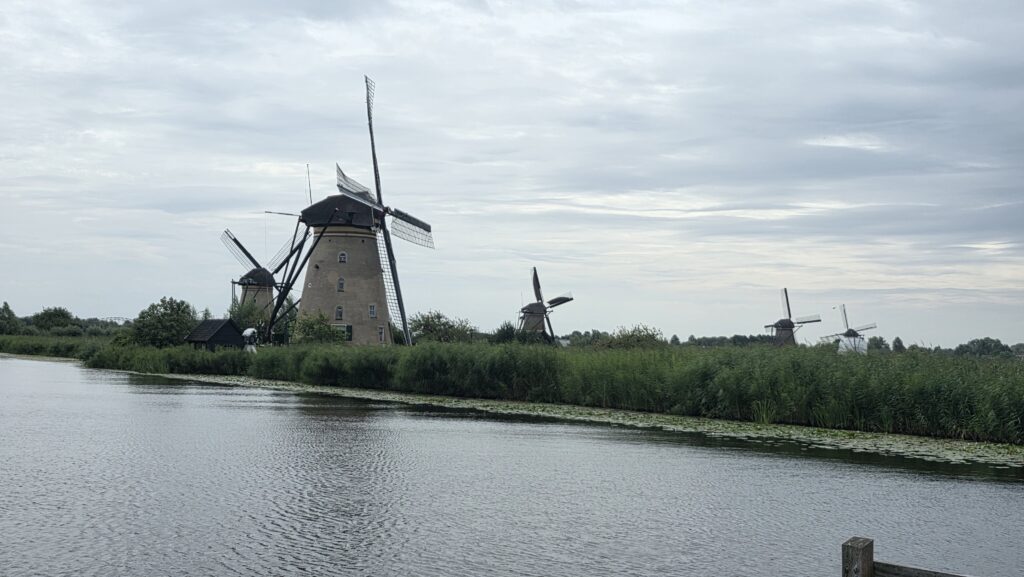 Nous partons observer une des 7 merveilles du pays : le complexe de Moulins de Kinderdijk, classé au patrimoine mondial de l’unesco.